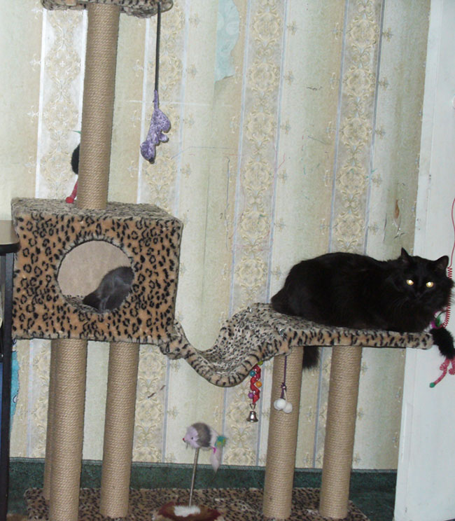 Jentiliris Опубликовано 8 июля, 2008 Share Опубликовано 8 июля, 2008 а, так это мы купили сначала конструкцию такую, но в домике они спать не хотели, в гамаке не висели, но очень любили ползать по палочкам и спать на самой верхней полочке (она маленькая совсем , даже у котят лапы и хвост свисают с неё), так что мы решили, что раз им так нравится ползать по палочкам и лежать повыше на полочках, то трансформируем это всё под их нужды, докупили креплений и вперёд. Теперь то, как они в одну секунду взмывают от пола до потолка по этой палке--надо видеть.. в цирк ходить не буду, однозначно, потому что дома цирк себе обеспечила Ссылка на комментарий Поделиться на другие сайты More sharing options...