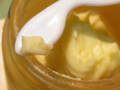 lessa Опубликовано 25 сентября, 2008 Share Опубликовано 25 сентября, 2008 Drakosha, спасибо за совет. В следующий раз попробую сделать так, как Вы посоветовали. У меня вчерашний день ознаменовался кремоварением. Это оказывается такой увлекательный процесс, что вместо одного крема я сделала четыре. И в результате получила совсем не то, что ожидала. Расскажу по-порядку. Сразу прошу прощения, т.к. не помню авторов рецептов. Я их все давно скопировала к себе в отдельный файлик и по мере надобности оттуда извлекаю. Ну и естественно в рецепты я кое-что привнесла от себя. 1. По рецепту должен был получиться крем. Получилось молочко. 5мл ланолин 5мл ши 10мл жожоба 5мл виноградная косточка 5мл пшеничные зародыши 5мл грецкий орех 5мл календула 5мл мацерат моркови 25мл мандариновой воды 2мл вит.С 1мл алоэ 40мл дистиллированной воды 5мл базового геля на основе гиалуроновой кислоты 3 кап. э/м розмарина. Получился очень жидкий крем. Я бы даже сказала молочко. Залила в бутылочку - косметику смывает великолепно. Сегодня посмотрела на него - расслоился. Сверху твердый крем, снизу вода. Взболтала - опять молочко. Вот как оно выглядит (фотографировала вчера): 2. Хотела получить молочко, получился крем. 0,5 ч.л. воска 10мл виноградная косточка 5мл миндаль на кончике ножа - желатин. В исходном рецепте был не желатин, а ксантан. 15мл мандариновой воды 5 кап. э/м иланг-иланг. Все, кроме воска в рецепте было другим, но соотношение воск-масло-эмульгатор сохранилось. Воды в креме получилось больше примерно на 10 мл (мензурка с маслом и воском перевернулась и зачерпнула воды). Обещали молочко, как облачко. Получился мягкий крем, который я залила в помпу. Крем ведет себя хорошо (3*тьфу). Кожей воспринимается замечательно. Никакого блеска не оставляет. Единственное "но" - слегка пощипывает на щеках. Пощипывание прошло где-то минут через 30, при этом никакого видимого раздражения или шелушения не было. 3. Крем для век. ПОЛУЧИЛСЯ! В рецепте было огромное количество сырья. Поделила все на 150. В результате получила примерно 5 мл крема, хотя рассчитывала на 15. 11мл мандариновой воды 0,7 г соевой муки (В рецепте был соевый белок. Его я не нашла, поэтому взяла муку, как самую богатую по содержанию белка) 0,19 г молочной кислоты 2,7 г (54 капли) масла пшеничный зародышей 0,7 г воска 0,2 г (2 капсулы или 4 капли) аевита 1 кап. э/м розы Муку взбила с водой, подогрела, добавила кислоту, тщательно размешала. Воск растопила, добавила масло, слегка остудила и добавила витамины. Влила масло в воду, взбивая миксером. Крем получился густым, при этом на коже очень хорошо тает и впитывается. Некоторое время остается блеск, который исчезает минут через 15-20. Ощущается легкий лифтинг. Утром веки были слегка отечны, наверное, стоит промокать кожу салфеткой. Об исчезновении морщинок сообщу своевременно. 4. Крем для тела. За основу был взят рецепт, который давала ВедъМа. 5г воска 10г ши 10г кокос 10мл оливка 10мл виноградная косточка 5мл абрикос 5мл мацерат моркови 10мл мандариновой воды 30мл дистиллированной воды 8 кап. пищевого ароматизатора "земляника" (хотелось мне вкусненько пахнуть ) Крем получился очень густой. Наутро в нем был обнаружен намек на крупинки. Ложится достаточно толстым слоем. После него я долго блестела и слегка липла к одежде, предметам мебели, самой себе... и вкусно пахла... В остатки мандариновой воды добавила 2 капли апельсина и получился зам